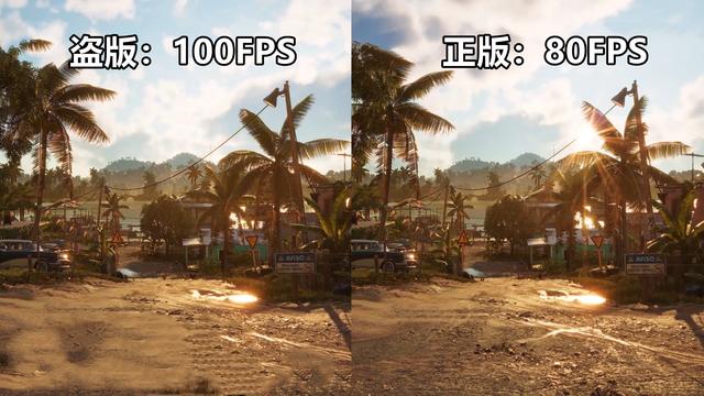 不骗大家,我在玩《孤岛惊魂6》的正版时,我的FPS值一直稳定在80左右,可是,我下载的盗版,居然能够提升到100FPS值左右,在正版里面,我们在一些特定的场景时,很容易出现的卡顿情况,在盗版里面压根不存在这样,相反,盗版的优化给人感觉比正版好出了不止一个台阶。