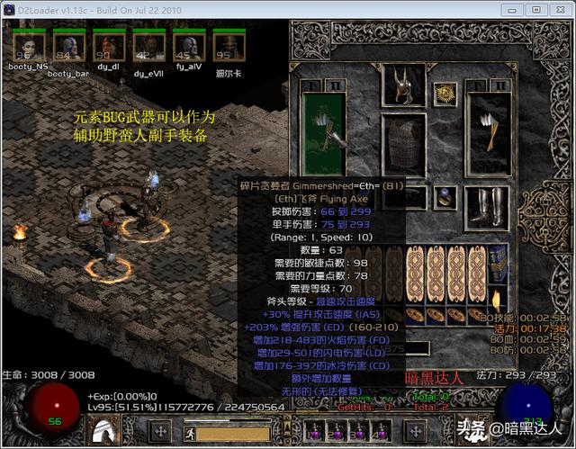 比较推荐的BUG“巴尔”玩法为主“火墙”的火法,装备以MF为主要求很低,技能只需要将火系的“火墙”、“火焰支配”和“热情”点满就够有足够的伤害轻松补刀“巴尔”。