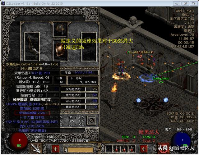 1.减速流。利用减速的办法击杀BOSS无论在操作还是装备搭配上都更加简单,常见带有减速效果的有暗金武器“水魔陷阱”(减速75%)和“烦恼诗集”(减速50%)、死灵法师的“黏土石魔”(随等级提高,例如20级的“黏土石魔”减速66%)、死灵法师的“衰老诅咒”(减速50%)、圣骑士“神圣冰冻”灵气(减速50%)等等。