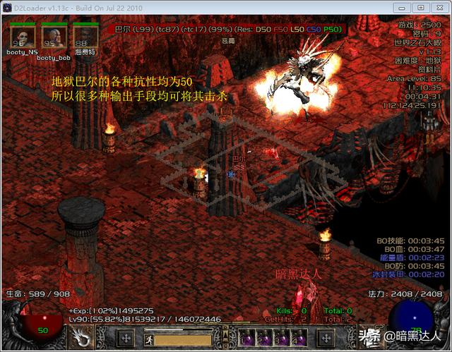 地狱“巴尔”冰系、火系、电系、毒系包括物理系抗性都是50点(魔法系抗性为0),所以各种玩法都不必担心打不动他(地狱很多小怪各种免疫比BOSS难缠多了)。只不过““巴尔””血量挺高,装备不是很好的新手想要击杀他会挺耗时间,维持续航的搭配和药水还是要准备充足。