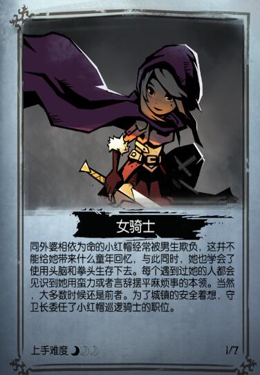 《月圆之夜》这款游戏的剧情总体来说是小红帽寻找外婆的故事,但在游戏内却截然不同。玩家扮演的小红帽不像是格林童话中那个天真的孩子,刚开始游戏的时候玩家就能够直接选择小红帽的职业,基础版的职业就有着四个之多,分别是骑士、游侠、修女和女巫。在这里就先简单的为大家介绍一下四个职业与其相应的一些卡牌。