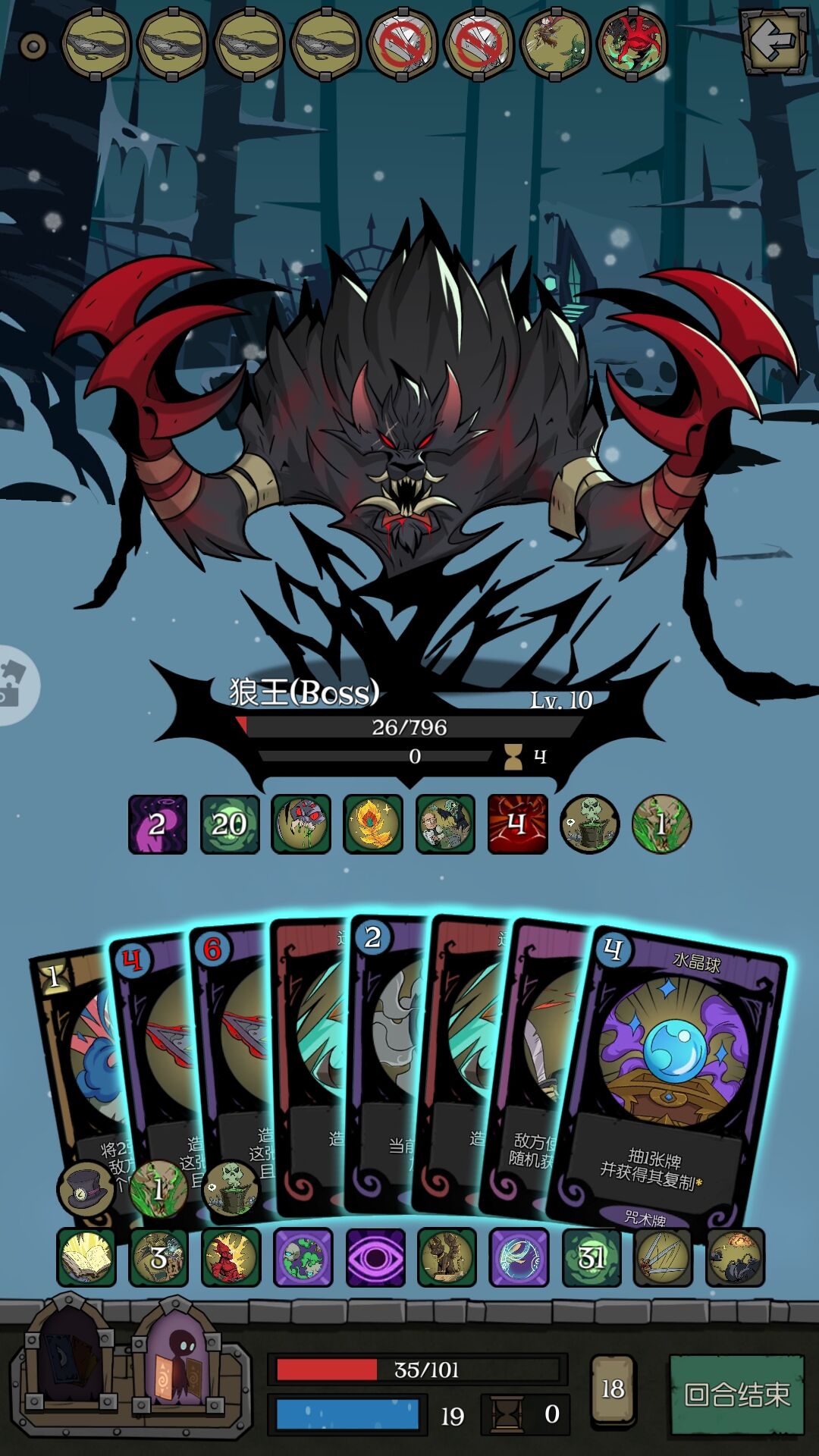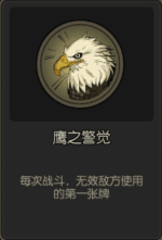 很多新手会觉得鹰之警觉这张牌不强,同样是无视类天赋,守卫雕像可以吃3张,但是打有先手打的怪时这张牌就发挥作用了,这个天赋有绝对的优先级,可以吃掉狼王的天赋,毕竟天赋也是牌啊,虽然被无效的天赋会返厂,但那已经是几个回合后的事了,而打狼王一般打不了太久,况且,你是个有无数陷阱可以安排行动牌的魔术师。