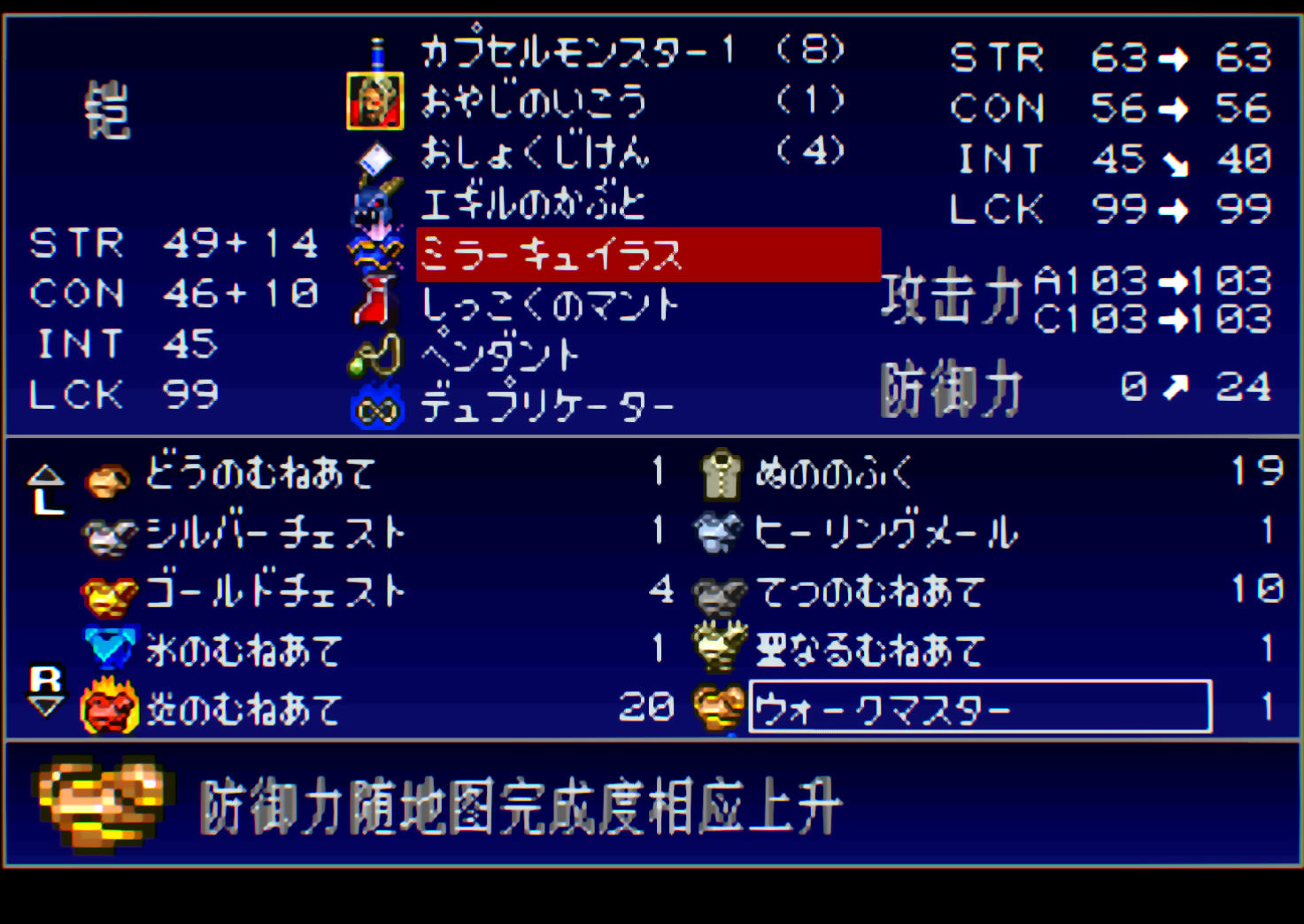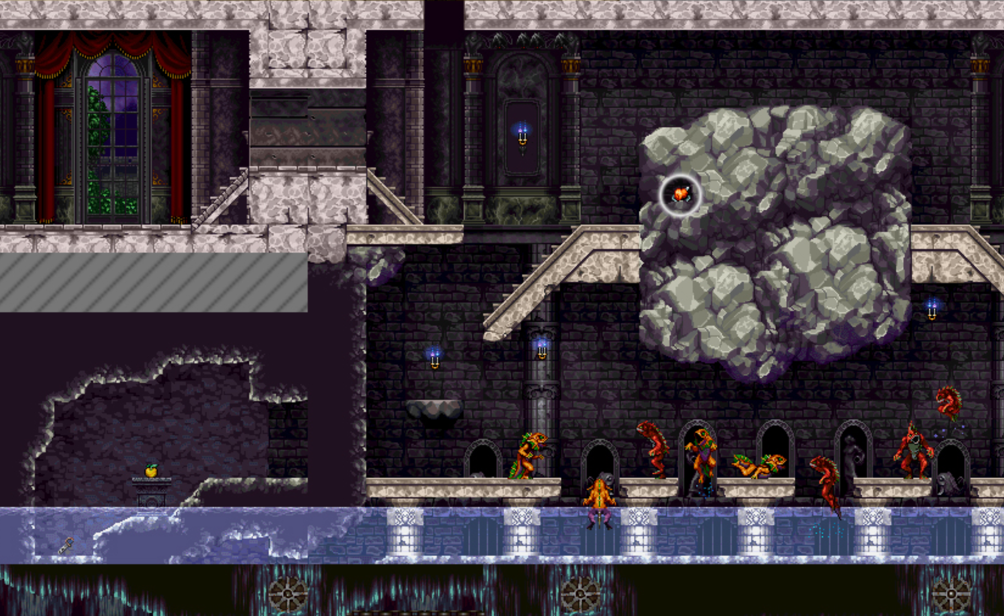 《恶魔城》系列的地图一般都以100%为准,必须将所有的房间和隐藏路径全都走到位才能达成。而地图的完成度往往都能在游戏中发挥作用,要么有专属装备或道具,要么就会影响游戏的结局。