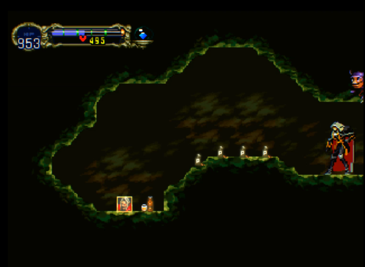 玩家们虽然对这个场景比较熟悉,但是进入恶魔城内部之后,除了拿“狼速”基本上就没有回来过。天知道蝙蝠和狼的配合还能整出来一个房间!那么问题来了,房间里面有什么宝贝呢?