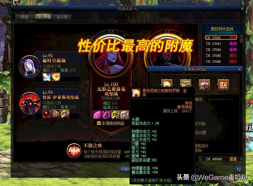 本周奥兹玛加入了“黑色之阿斯特罗斯”的传说宝珠,可附魔头肩,属性超强:2技攻、10点三攻、40点四维、5%暴击率,名望也高达158点。为何说这个宝珠的性价比最高呢?价格太离谱了!不是说太高,而是太低。