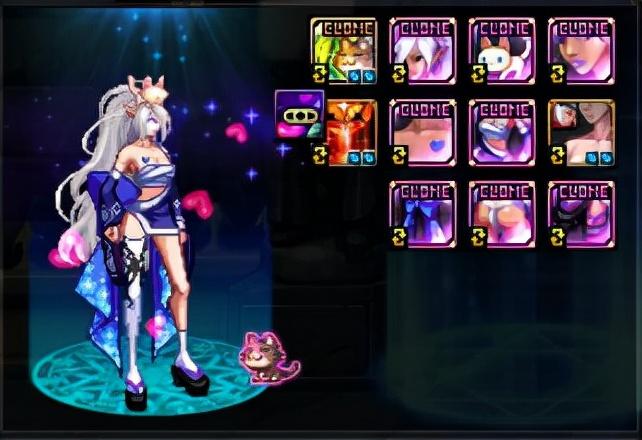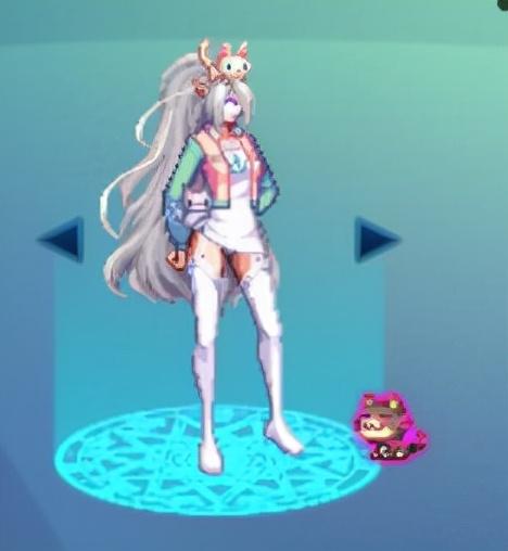 想配高跟鞋是完全没有问题的,商城常驻高跟鞋。下装是树杈天空套下装,黑丝跟白丝,与其说是白丝,我跟人更倾向于说是肉丝。上衣是积分商城换的白衬衫,每年年套基本都会有,头顶小猫咪跟腰间的小猫咪是商城常驻装扮,可以自行搜索。