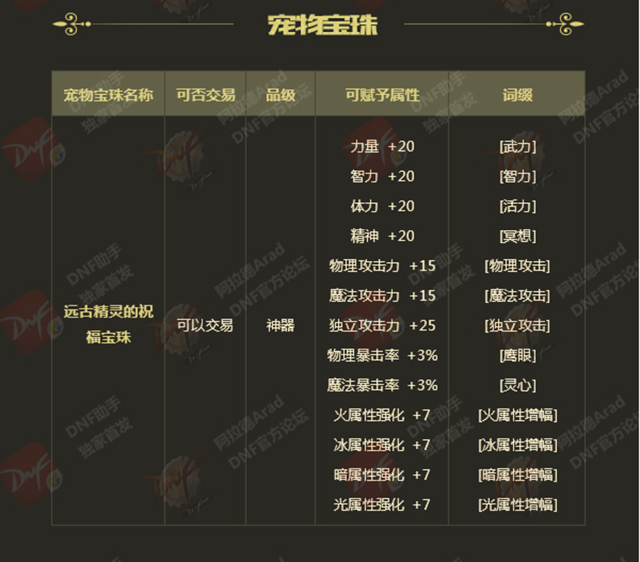 与前年的dnf最强宠物关羽和去年的神宠艾莉丝相比较,少了35的双攻和55独立,多了110点四维(奶爸奶妈重充钱警告)