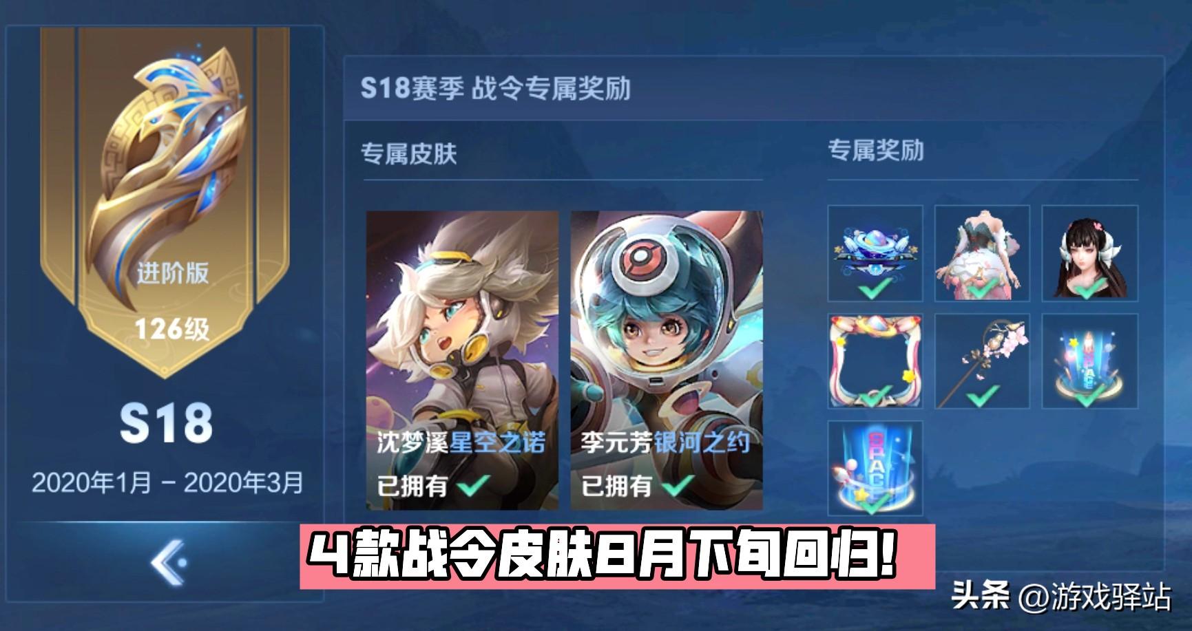 首先8月下旬将启动S28赛季战令系统第九周的任务,届时将上线战令皮肤返场活动,包含了S24和S18两个赛季的战令限定皮肤,分别是老夫子航海奇遇记、墨子神迹守卫、妲己女仆咖啡星元套装、李元芳银河之约、沈梦溪星空之诺、王昭君偶像歌手星元套装。四款战令限定皮肤可消耗1275或3125战令币必得,相较而言小编更建议大家兑换沈梦溪和李元芳的航天主题皮肤,毕竟这是二次返场,再次回归就不知要等到猴年马月了。