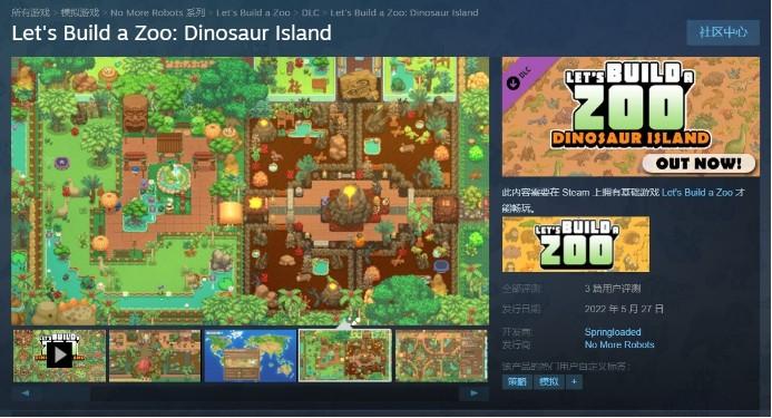 《一起来造动物园》DLC“恐龙岛”今日(5月27日)正式上线,支持中文,Steam国区售价37元,首发周9折优惠。折后价33.3元,优惠截止至6月3日。“恐龙岛”是《一起来造动物园》一个全新的扩展包,包含新的动物园、新的故事模式、新动物等等内容。