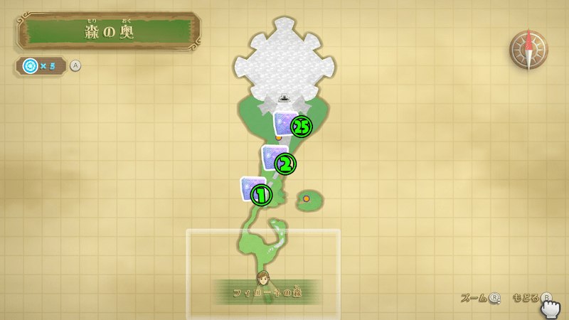 | 2 | 费罗尼森林・森林深处 | 天空 | 心之碎片 |
