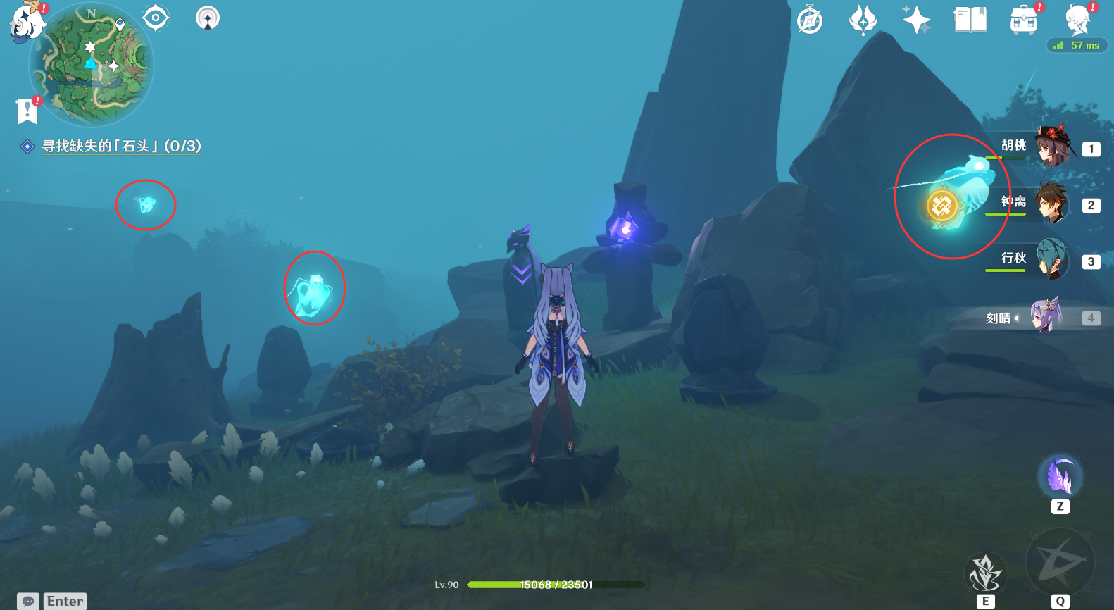 8.在寻找下一个雷鸟石像,使用羽毛寻找线索,使用羽毛后,周围出现三个仙灵,跟随三个仙灵走到终点,找到3个石块,