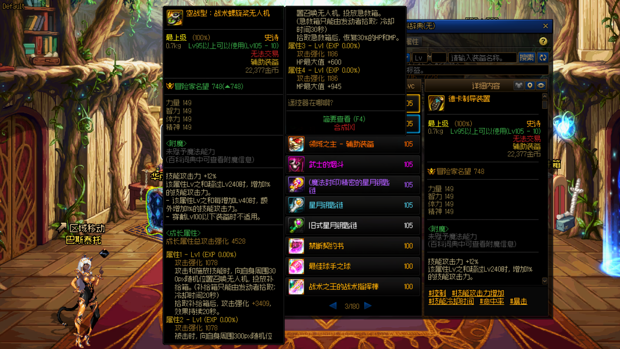 无人机想要获得词条的提升,必须要捡起地图内的无人机,并且持续20秒的BUFF时间,也就是说,如果没有捡无人机,就拿不到这一个属性加成,但目前国服还没有优化,无人机出现的范围比较大,再加上很多时候会忘了捡,导致伤害不稳定。在捡起无人机的情况下测试伤害为152.24亿,综合提升31.87%。