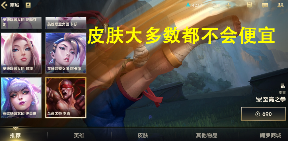 玩英雄联盟手游的很多都是端游的玩家,他们在端游中或许就有类似的皮肤,而玩手游再买一个皮肤确实有点令他们心疼。并且手游中的皮肤价格跟端游中的价格一样并没有便宜,所以很多玩家们也是很纠结究竟需不需要去购买皮肤。