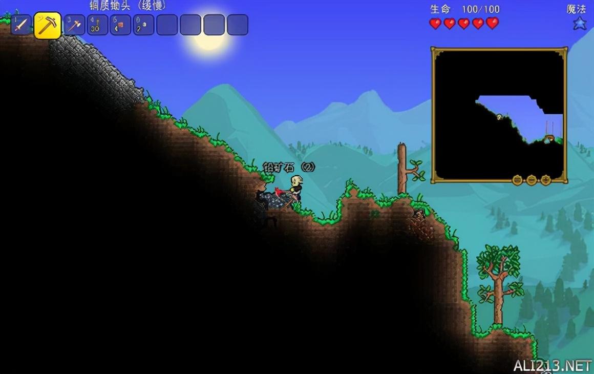 通过的努力,打造了一套锡装甲,全套铅工具。统治了一个一丢丢大得小山包。但是这是远远不够的。要好装备还需要更多的努力,因为是在前期,就去一些深深的矿洞里挖些矿石,到时后再挑战腐地和丛林。