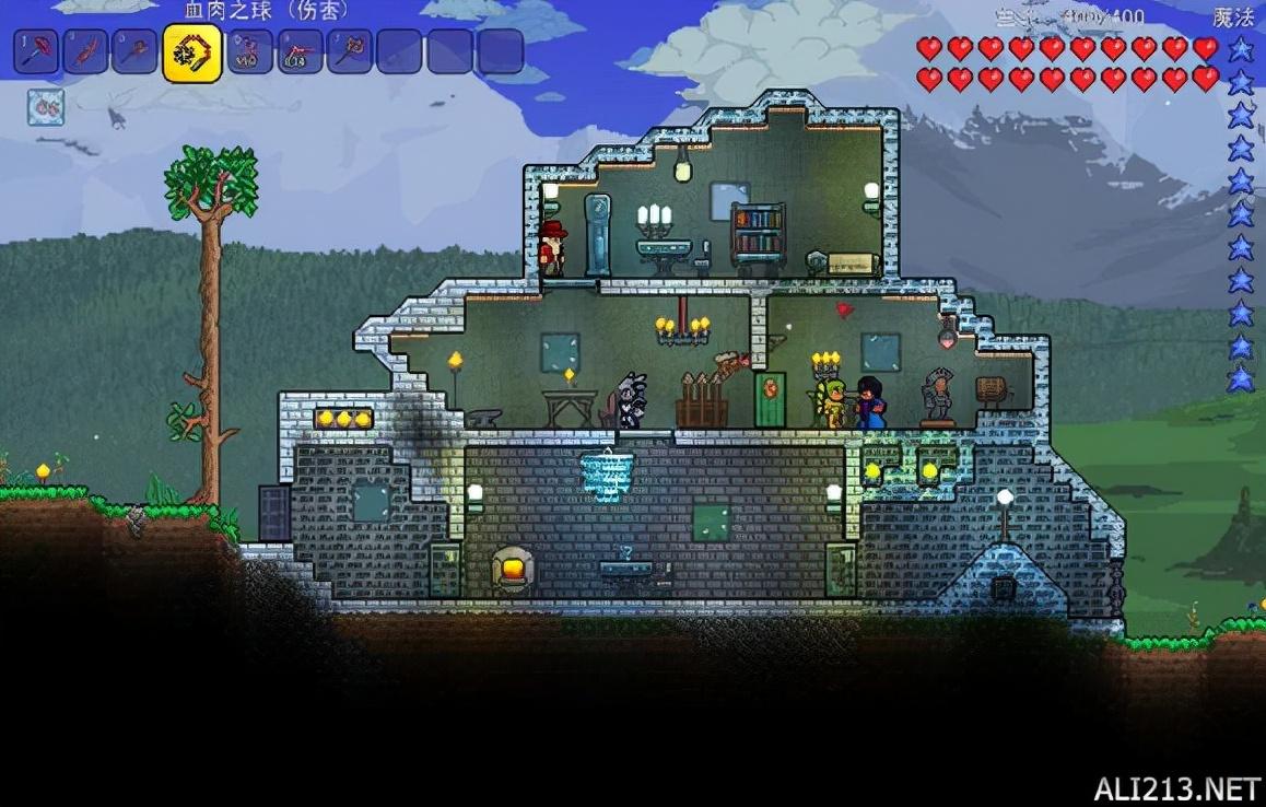 一辈子不能靠那个山包,得盖房!盖了一个像核避难所的东西,来了两只npc,一只是向导,就是看合成表用的,没别的用了。商人会卖些零零碎碎的东西,像荧光棒,绳子,火把之类的。只要你有50银币和住房就够了。住房没有别的要求,只要有墙壁,一处或以上照明,全部封闭或有门。有桌子(或工作台)椅子,就没有别的要求了。