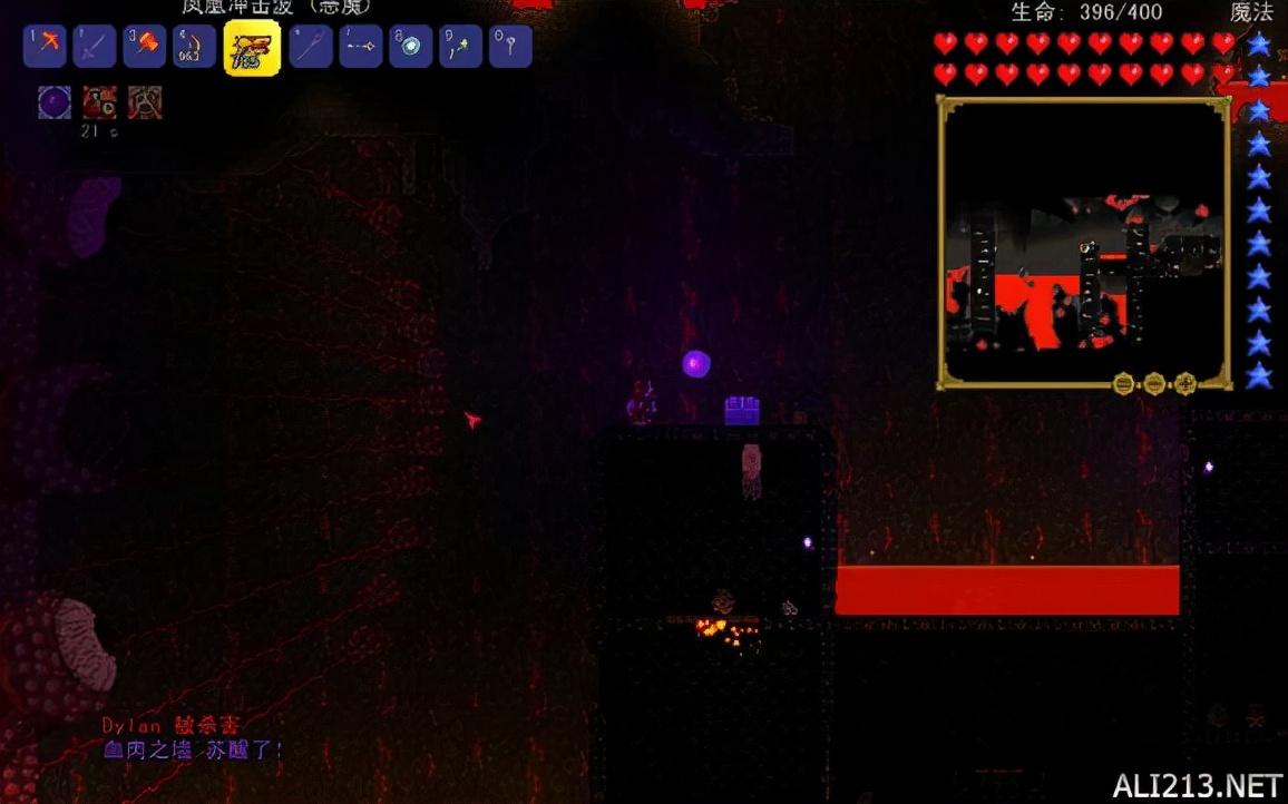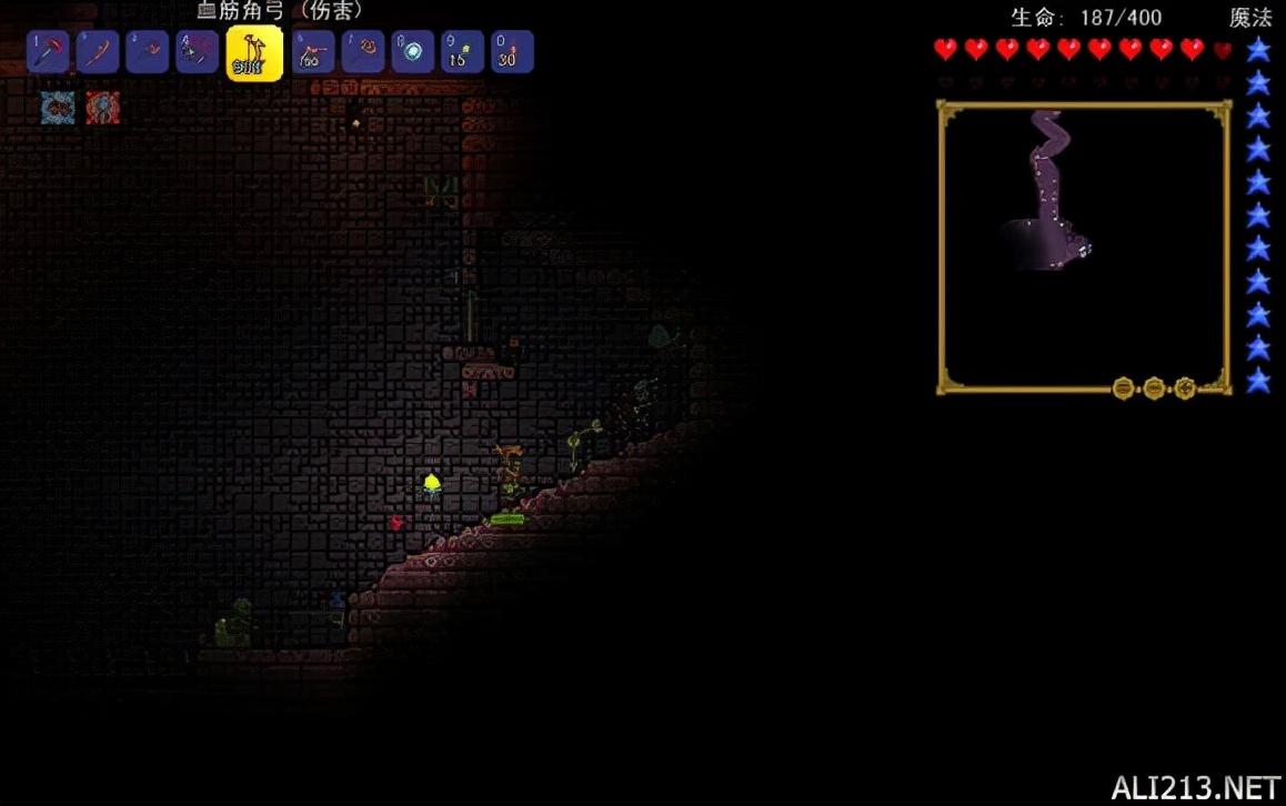 前期挺好用的,后期就略显逊色了。地牢的亮点可要比骷髅王多。当你击败骷髅王后地牢守卫者会消失(全游戏最厉害的怪物)。就可以进入地牢了。世界中的地牢为粉色地牢,一共有三种地牢,分别是绿色,粉色,蓝色。愤怒的骷髅是地牢里的怪物,击败后80%掉骨头。骨头本身是武器,也是制作钢琴,死灵盔甲的材料。