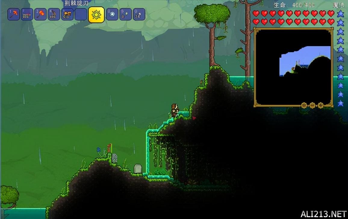 前期丛林中没有特殊矿物,但是地底下的毒蜂的蜂刺可是好东西。造出来的任何武器均可小几率造成毒素伤害。但是也有更大的蜂——蜂后!蜂后是蜂巢中的boss,在丛林的底下有一定几率遇见蜂巢。用稿子击碎蜂巢中的蜜蜂分泌物(浓黄色方块,中间有之蠕动的幼虫)后即可召唤。