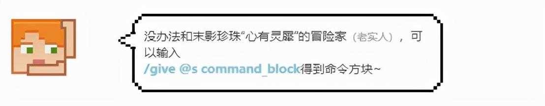 然后就需要用到命令方块了,方块菌决定请教一下“见多识广”的末影珍珠。拿起末影珍珠,在心里默念命令方块,如果末影珍珠听到了你内心的愿望就会带你去寻找命令方块哦~