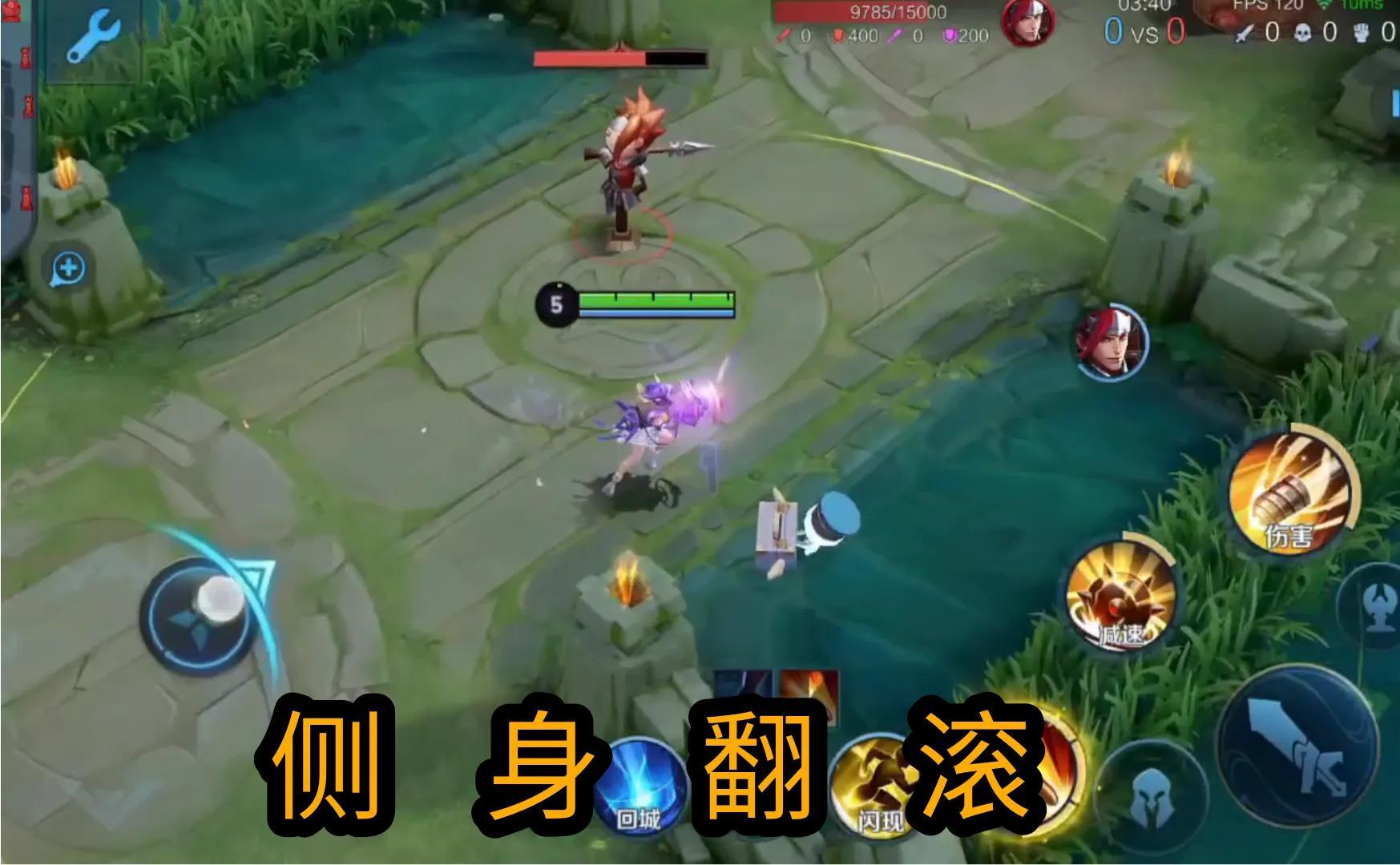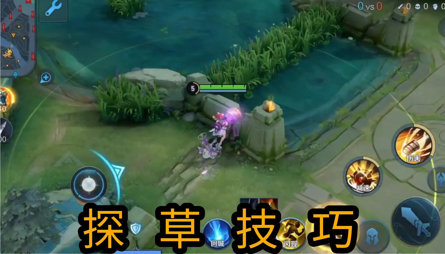 所以大家一定要有一个习惯,在一技能往草丛方向翻滚的同时,立即往回拉方向。这个时候如果草丛里有人,我们就会有一个加速效果,而我们又往回拉方向就可以很好地和草丛拉开一个距离。