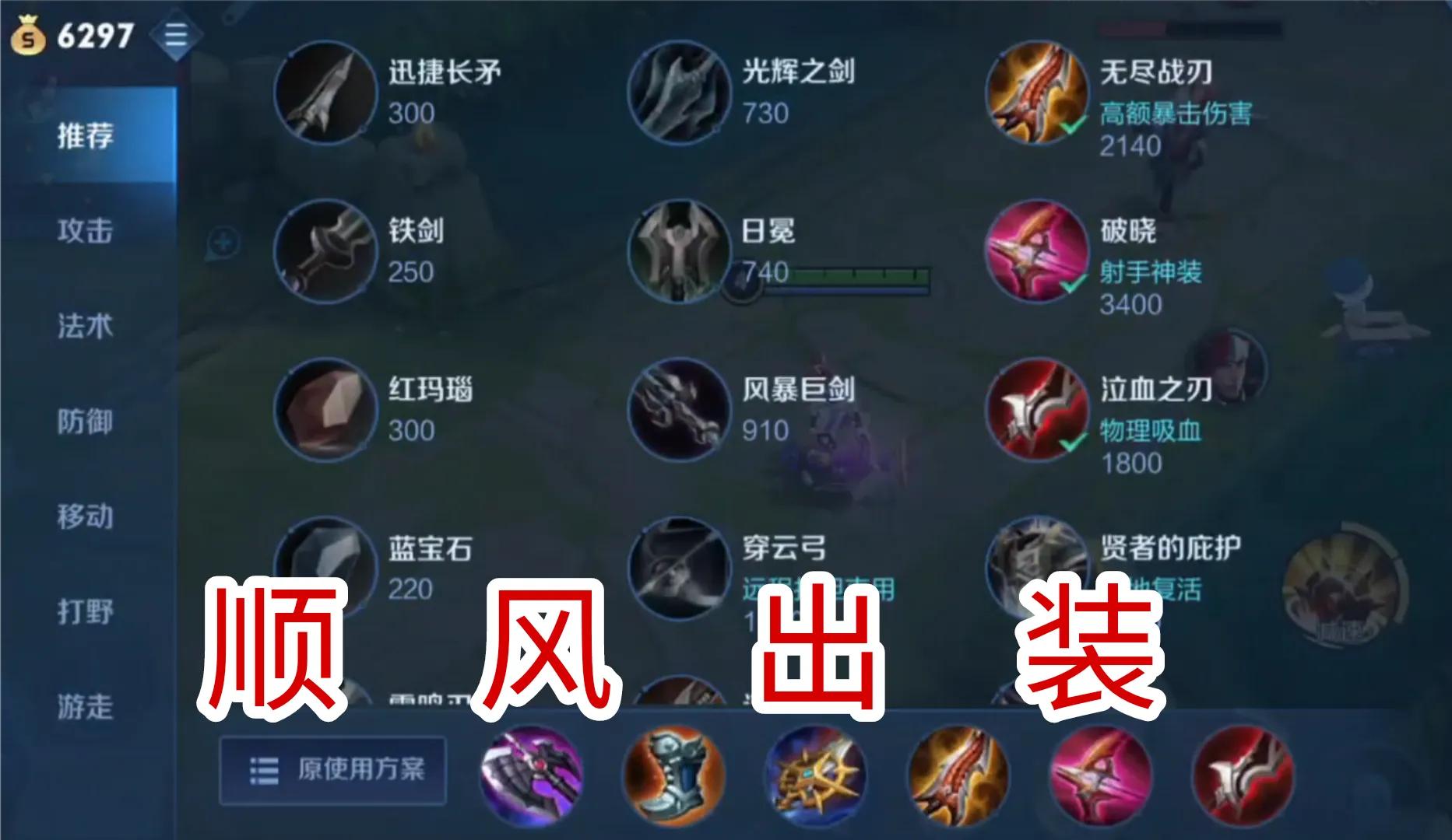 如果是逆风局,我们就可以合成碎星锤,然后后面买一个影刃,最后可以再购买泣血之刃或者贤者的庇护,又或者是一件其他的物抗或魔抗装备。如果你觉得你的手法可以,你也可以买一个纯净苍穹。