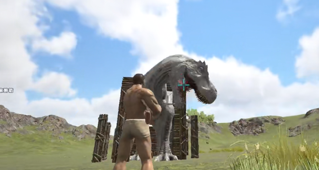 在制作好困龙房以后,玩家就能让自己变成诱饵,然后去激怒霸王龙把它给引诱到困兽笼里了。别看这困龙房是木头制作的,但霸王龙就是无法在短时间内脱身,在这个时间里玩家就能用麻醉枪把它给打晕,然后就能轻松把它给驯服了。