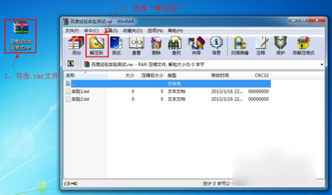 首先,双击鼠标以打开需要打开的rar文件,然后出现一个解压提示框,然后在菜单栏中单击“提取到”。