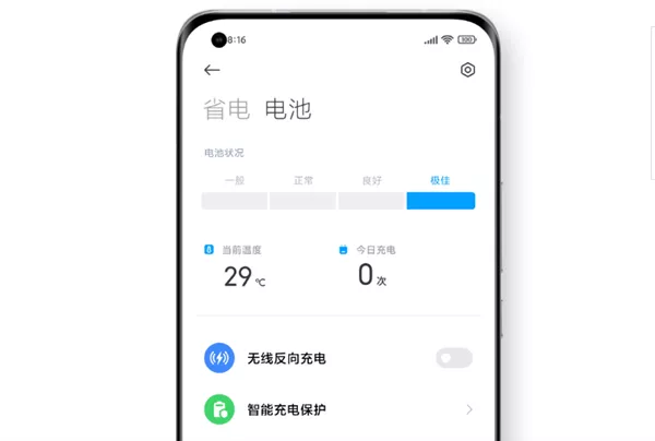 只不过小米这个电池健康度并没有具体数值,而是分为了四档:一般、正常、良好、极佳。