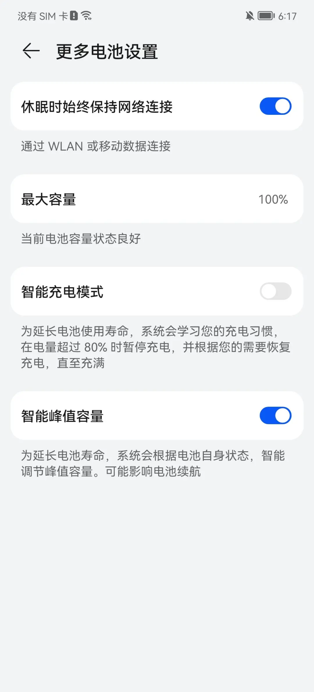的确,现在很多手机的系统设置中,都没有一个完整的 “电池健康管理功能”: