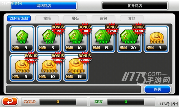 游戏下载免费,而设置了比较全面的内购系统。Zen点数、宝石、卷轴等道具应有尽有,还有就是可以提升角色属性的换装出售。虽然花钱点比较多,但是对于熟悉RPG游戏的玩家来说“刷”这个字都是习以为常了。通过反复刷怪可获得大量金币道具,但是相对来说花费的时间会比较长。