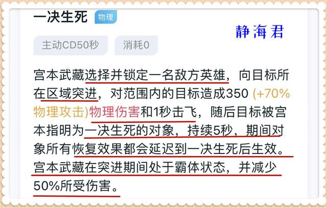 宫本武藏三技能的核心关键词是:突进、击飞、一决生死。