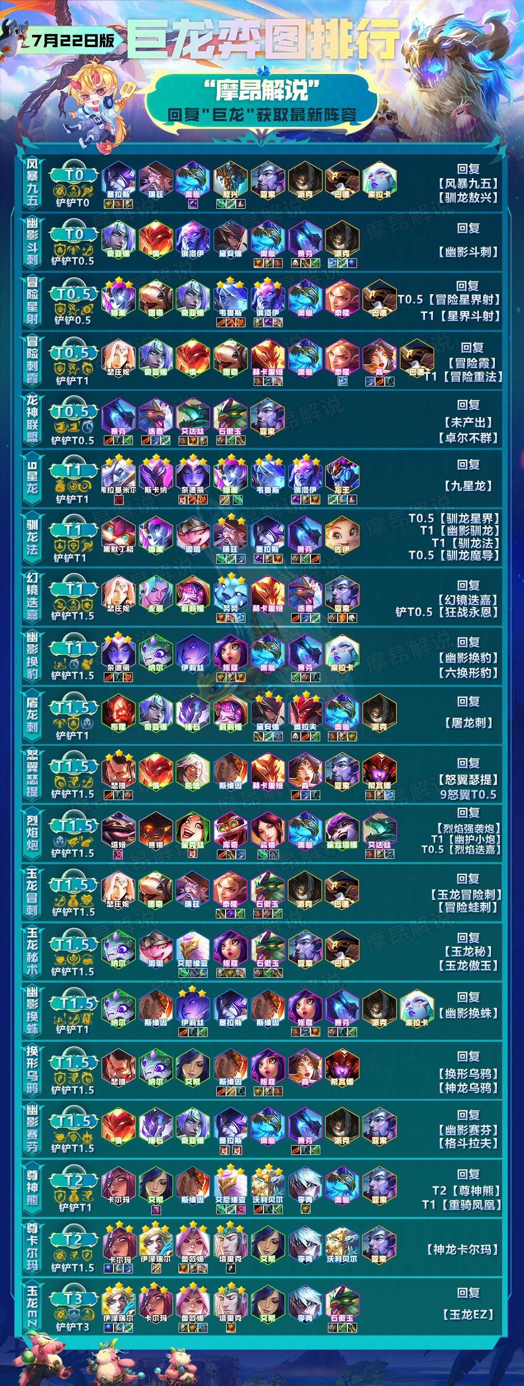 兄弟们好,我是摩昂解说,版本的强势阵容均在【弈图排行】 !