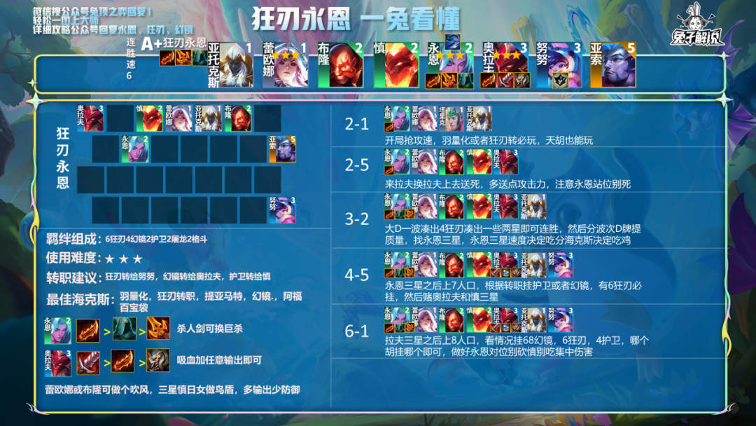 但是吃鸡的羁绊主要是6狂刃或者是8幻镜