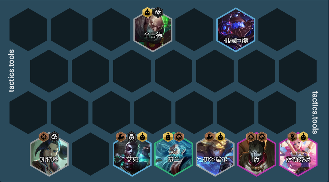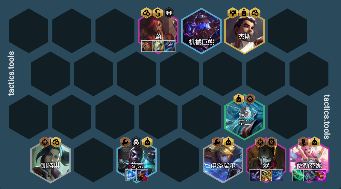 阵容组成:凯特琳、伊泽瑞尔、基兰、艾克、蔚、萨勒芬妮、烬、杰斯