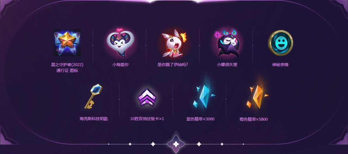 星之守护者(2022)币×200,星之守护者(2022)法球×4,通过对局任务获得更多星之守护者(2022)币。