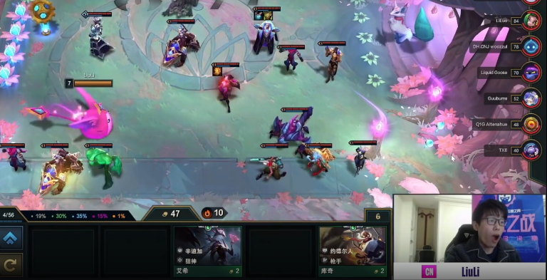 第三局开局就是旺盛胃口的BUFF,这意味着几乎所有人都去卷变异战士了。前期琉璃靠着皇子打工拿到连胜,然后表演了一波仙术,7人口直接拿到了卡莎。屏幕前的琉璃先是露出难以置信的表情,接下来就是狂笑不止。内卷比赛,谁先拿到核心卡谁就能决定接下来的走下。不出意料的琉璃成功吃鸡,这一次反而是梨落老六出局。
