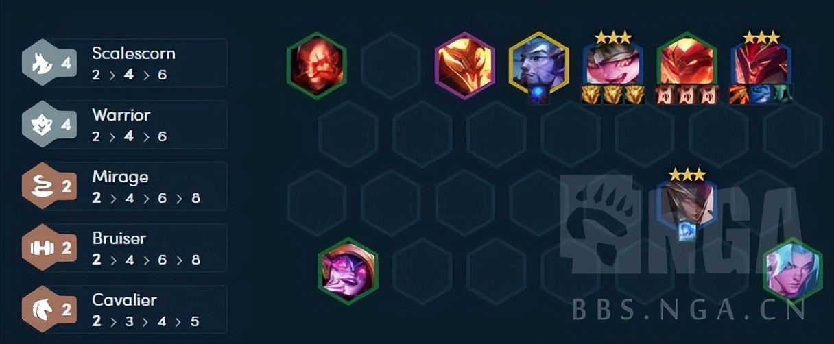 某些阵容太过后期,比较考验棋手的锁血过渡能力,因此就要前期大量的连胜保证经济,装备要在阵容可用的情况下今早完成,保证装备区不超过二件散件闲置。