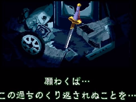 嘉神放弃了自己的武器,消失在远方,多年之后,嘉神的武器在一堆现代垃圾之中孤独矗立,