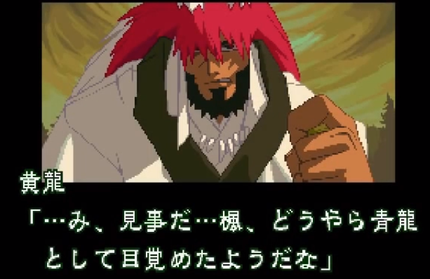当枫历尽千辛万苦来到“地狱门”之前,却发现对面的敌人“黄龙”就是自己已经死去的养父,上代“青龙”慨世,但此时他只是常世使者“黄龙”,