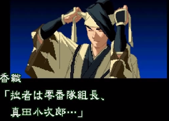 新撰组零番队队长真田小次郎,其实这是真田小次郎的妹妹真田香织,女扮男装顶替哥哥真田小次郎的身份来调查哥哥被杀一事,如果看过雪叔上一篇《月华之剑士》的就应该知道,上一篇专门提到了紫镜在一代时击杀了真田小次郎,PS版的开场动画中有提到,