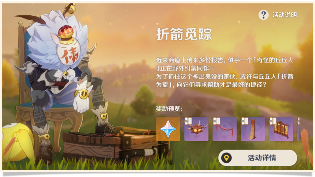 躲猫猫模式和迷城战线结束之后,新一轮的活动【折箭觅踪】来了,为了让大家更好地了解这个活动以及活动的奖励,盟盟决定花一整期的内容和大家好好聊一下以及给大家科普一下丘丘人语录,赶紧来看看吧。
