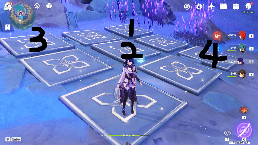 首先我们先来到boss右下方的一个九宫格清理周围的小怪,然后解锁打开地下的开关。九宫格只需踩亮4个位置,具体位置如下图。