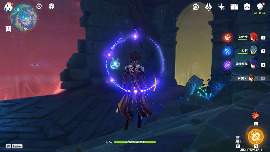 下去后也有小怪和宝箱,清理后启动红色的机关,然后跟随仙灵。