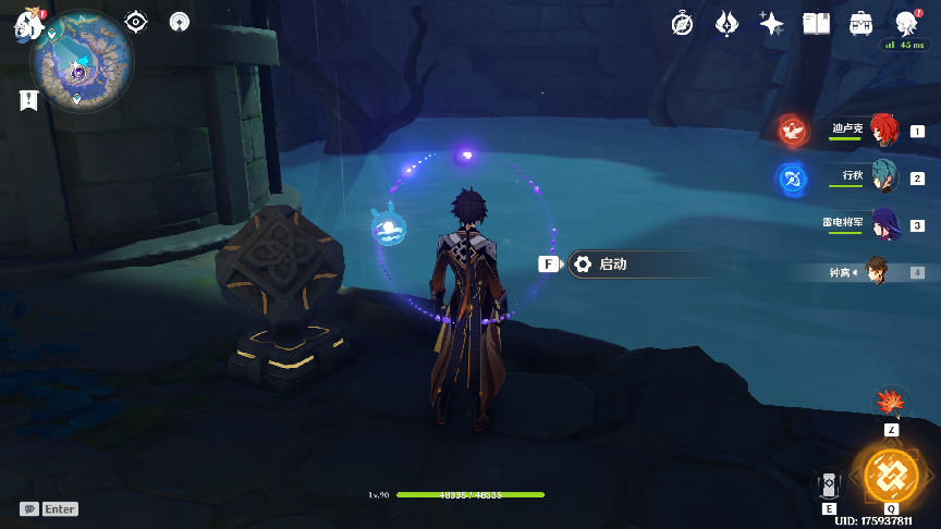 之后解锁旁边的开关,打开开关,中间的湖水退去,露出通往地下的裂缝。洞口上方的雷神瞳用相位之门或者利用周围高低差的地形都可获取。