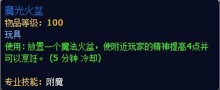 达拉然出售一个玩具火盆的配方,制造需要消耗1混沌水晶,100 阿卡纳精华,5 萨格拉斯之血。