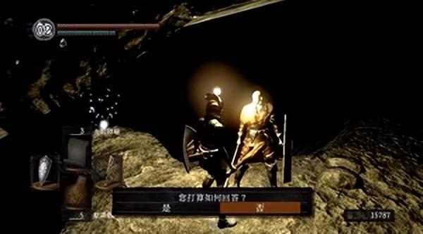 注意看!此时的太阳骑士戴上了太阳虫头盔,所以他的心智已被太阳虫控制,将其击败可得到他的防具,盾牌,武器与护符(别问我为什么主角戴太阳虫头盔不会受到影响)。如想要救活太阳骑士,需要在进入混沌废都伊扎里斯之前向白蜘蛛献上30个人性来开通1条近路