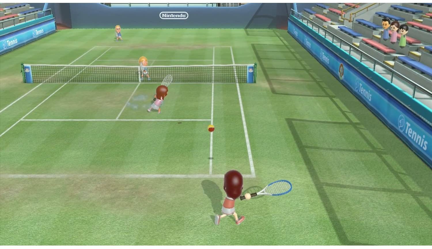 《Wii Sports》最大限度了发挥了体感游戏的特性,特别是和朋友一起玩网球非常有意思,本作结合了运动和游戏2个相反的元素,妈妈终于不会说我别玩游戏快去运动了。