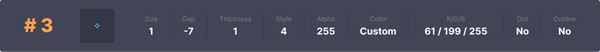 即便它的size只有1,这种天蓝色准星依然被12%的玩家使用,可见几乎看不出来的准星也很有市场。