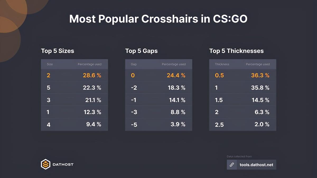 一款适合你的的准星对提升精准度好处多多。近日,CSGO国外服务器代理Dathost对上百万玩家的准星样式进行了分析,得出了最受欢迎的五种准星。