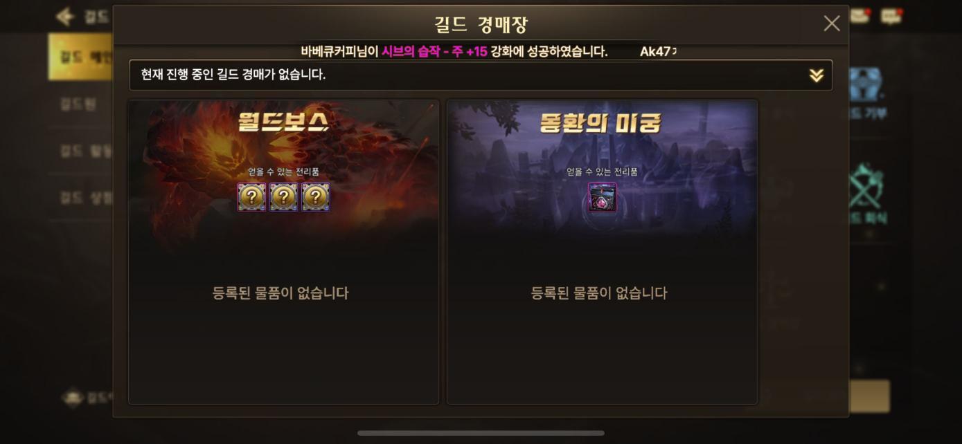 观察一段时间很多玩家 因为看不懂韩文,所以这次再次强调一下,打完世界BOSS和迷宫记得点击公会拍卖进行竞拍 不然是会错过很多白金徽章和奖励!