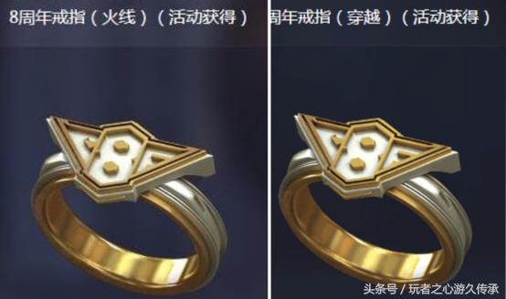 这两枚戒指均可以在火线变革计划活动中获得,只要玩家每天登录游戏,就能在活动中获取积分,从而兑换永久的两枚八周年戒指。活动所剩时间不多,还没兑换的玩家要抓紧咯,两枚戒指可以说十分珍贵,是花钱也买不到的,戒指上刻着穿越火线陪我们一起走过的八年岁月,两枚戒指的功能和龙戒蛇戒一样强大,真是官方给予广大玩家的福利啊。